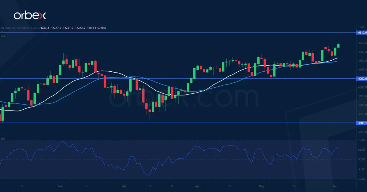 Brent crude struggles to stabilise as the demand outlook from top consumers remains uncertain. Weaker manufacturing activity in China, the world’s top oil importer, would put a question mark on demand sustainability. Across the Pacific, Fed officials have suggested that interest rates could be kept on hold in June. This pause signal may help the price regain a foothold in an oversold market. the OPEC+ meeting will shed lights on whether further production cuts will be in the pipeline, but while the supply side may induce volatility, the demand narrative remains a key driver. 70.00 is a critical support and 80.40 the closest hurdle.