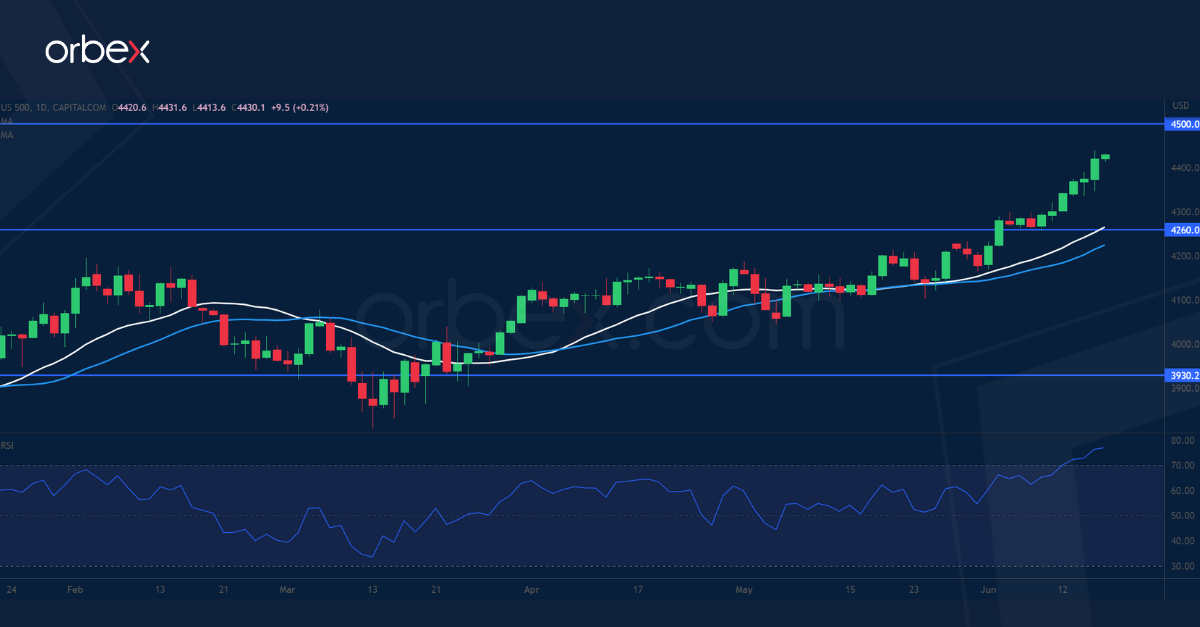 The S&P 500 rallies as fears of recession dissipate despite the Fed’s hawkish tilt. Just like some other central banks e.g. the RBA and the BoC, it looks like the Fed has also adopted the ‘stop-and-go’ strategy to give the economy enough time to digest its aggressive quantitative tightening. A shift in rate expectations would be a major market driver as a slower decline in inflation, if confirmed by the next sets of data, could warrant another half of a percentage point by the end of this year, which would be at odds with lingering hopes of a rate cut. Until then, the pause is lifting the index towards 4500 with 4260 as the closest support.