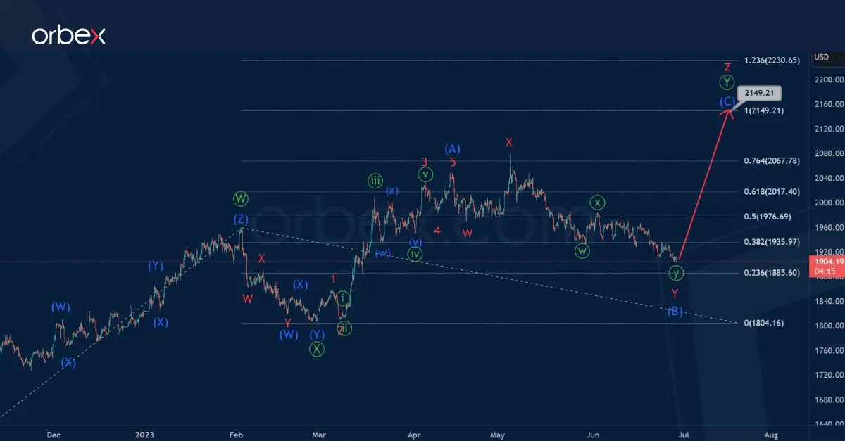 The rise is expected to reach 2149.85, where the primary wave Ⓨ will be equal to wave Ⓦ.