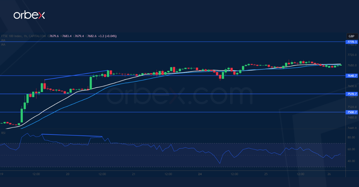 The commodity-heavy FTSE inches higher as China pledges to shore up its property market. A close above June’s peak of 7685 is another milestone in the two-week long rebound, signalling a strong lingering bullish pressure despite a correction from last May. 7770 from the start of the late May sell-off is the next hurdle. However, a bearish RSI divergence indicates a deceleration in the upward momentum and the bulls could use some breathing room to consolidate their gains. 7640 is the closest support in case of a pullback.