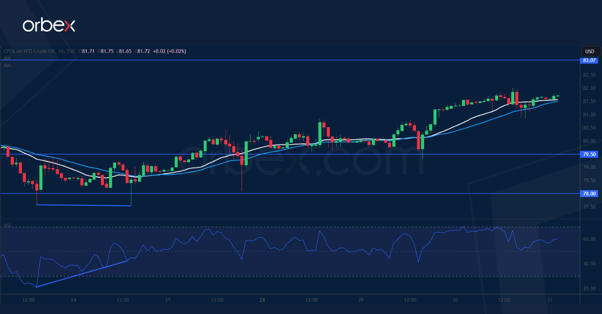 Oil prices advanced as inventories fell by more than expected last week. On the daily chart, the directional bias remains up with the commodity probing for support after a convincing break above April’s high of 83.30. A bullish RSI divergence at 78.00 was a sign of stabilisation. Subsequently, a series of higher lows and a close above the peak of a previous swing high (81.60) indicates a strong bullish drive. 83.00 might be the last key resistance and its breach could resume WTI’s recovery. 79.50 is a fresh support in case of a pullback.