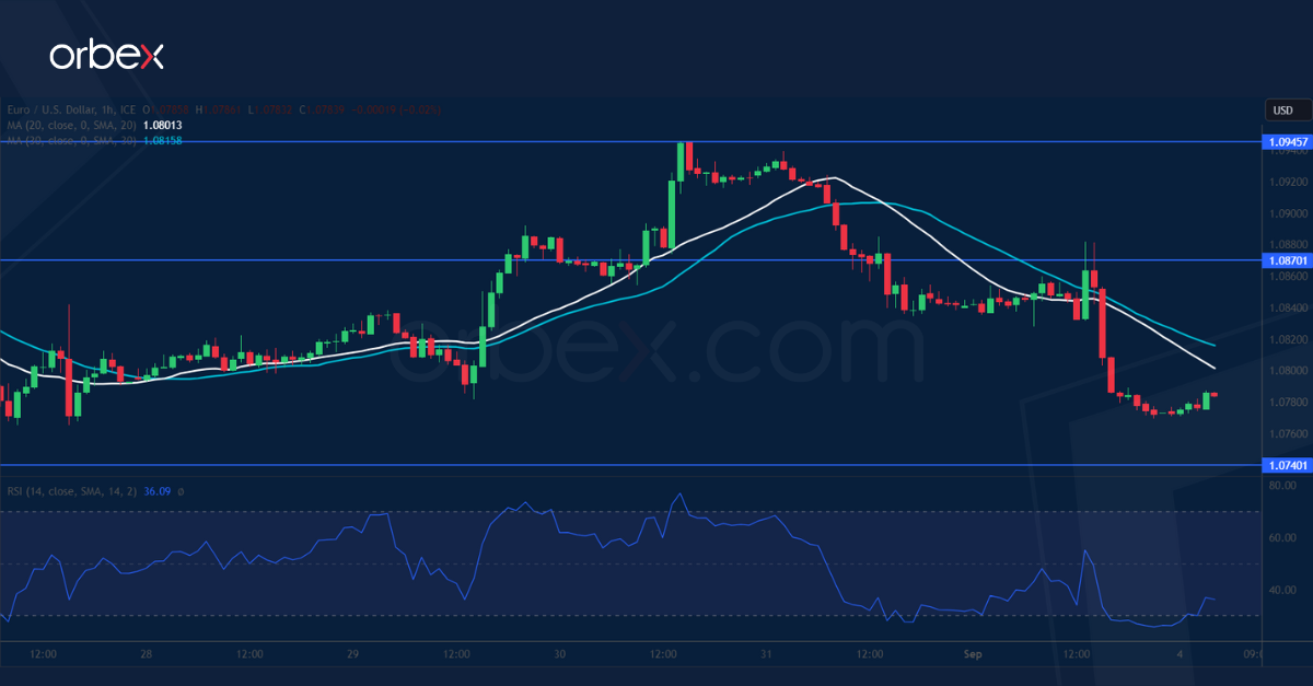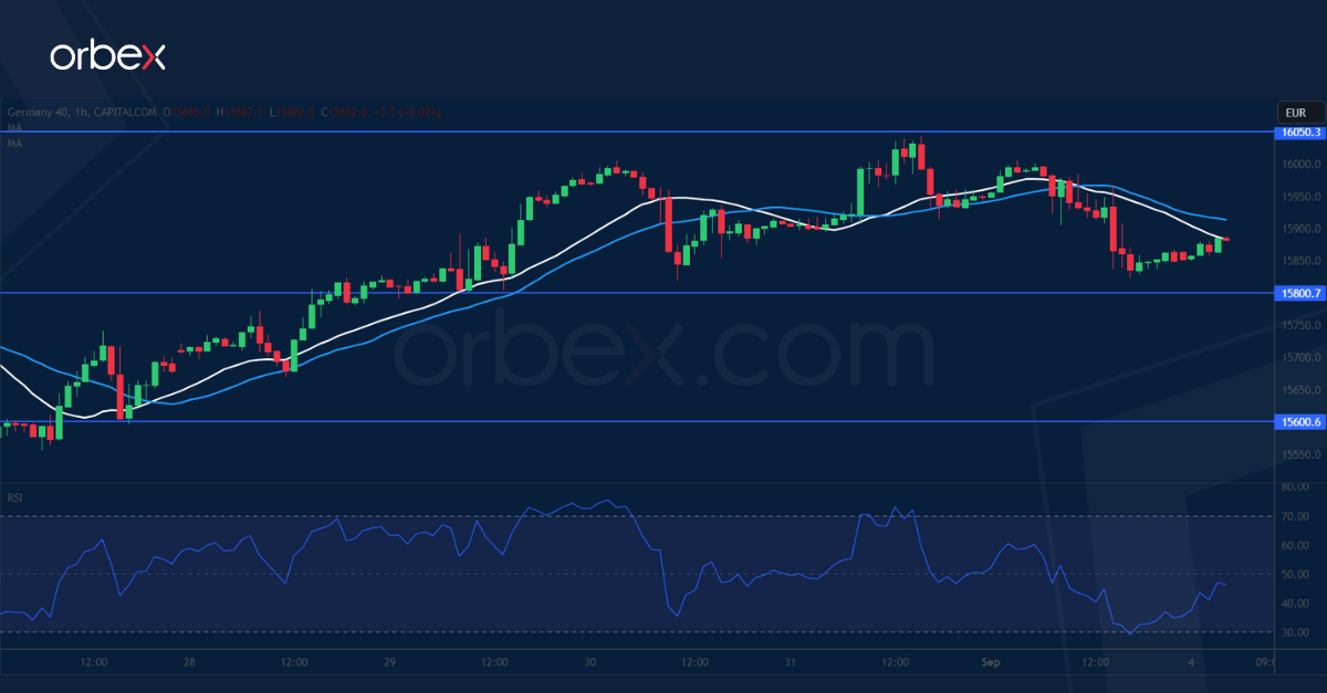 The Dax 40 offset previous gains over lacklustre PMIs across the eurozone. A break above 15960 has led bears to take some chips off the table and this could be a pivotal point for the price action in the coming week. The medium-term trend would remain bullish as long as the quote is above July’s floor of 15500. The pullback has driven the RSI’s into the oversold area, leading to a test of the bulls’ commitment. 15800 is a fresh support with 15600 as a second layer of defence. A close above 16050 would trigger a runaway rally.