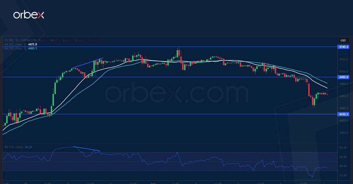 The S&P 500 fell as bond yields rose after stronger-than-expected services PMI. The rally has hit a roadblock at 4540 after lifting offers around 4500. A bearish RSI showed a loss of momentum in the bounce within the supply zone, suggesting that intraday buyers have taken some chips off the table. As the RSI sank into the oversold area, the index is looking to secure a foothold with 4430 at the base of the latest breakout rally as the first level to expect renewed buying interests. 4490 is the first resistance in case of a rebound.