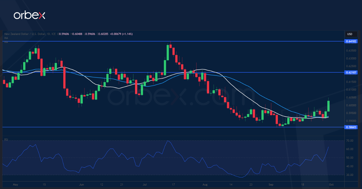 The Australian dollar heads south as slowing inflation builds a case for an extended pause in rate hikes. Despite volatile energy costs, core inflation eased further in August, lessening the burden on the RBA to press for more tightening. The market widely expects the central bank to stay put for the fourth consecutive time this week. The uncertainty and a potential market mover are whether policymakers have one more hike under their sleeves before the end of the year or would be patient enough to kick the can down the road into next spring. 0.6280 is the next support and a hawkish outlook may send the aussie above 0.6650.