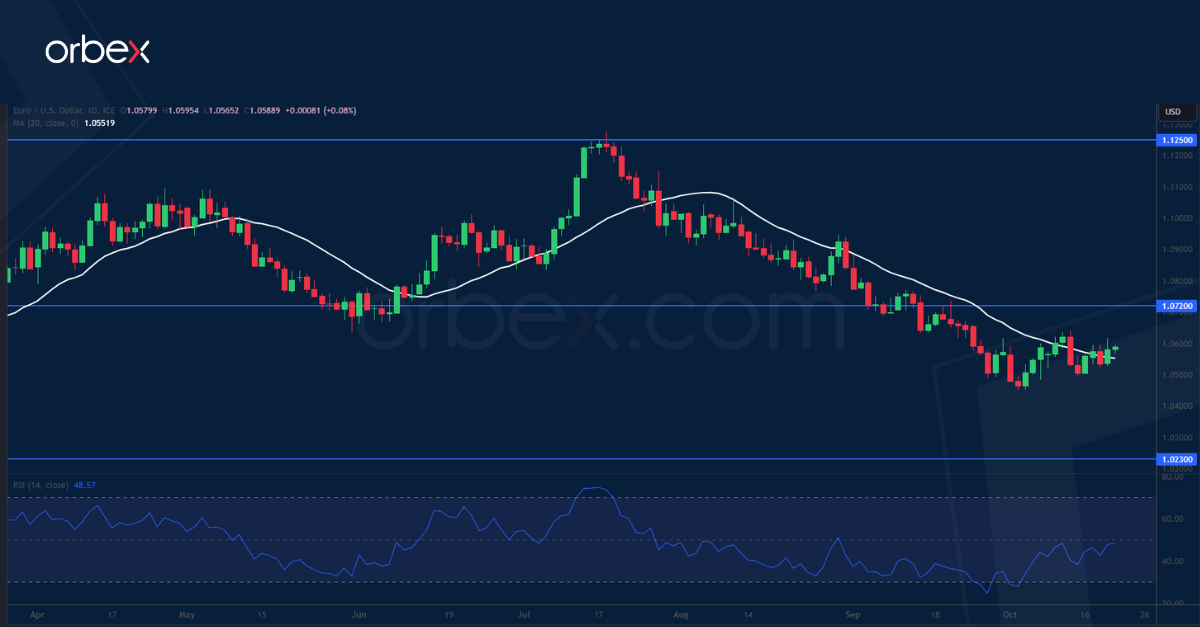 Brent crude jumped as the Israel-Hamas conflict raised fears of supply disruptions in the region. A potential contagion in the Middle East with the involvement of Iran would send oil prices surging, as markets still have vivid memories of the invasion of Ukraine last year. With everyone’s attention fully focused on the supply side, prices are likely to remain choppy as traders try to game out different scenarios. However, only a de-escalation, though unlikely in the short-term, would calm the nerves and drive energy prices back down. The price has found support over 82.00 and 99.00 is the next obstacle.