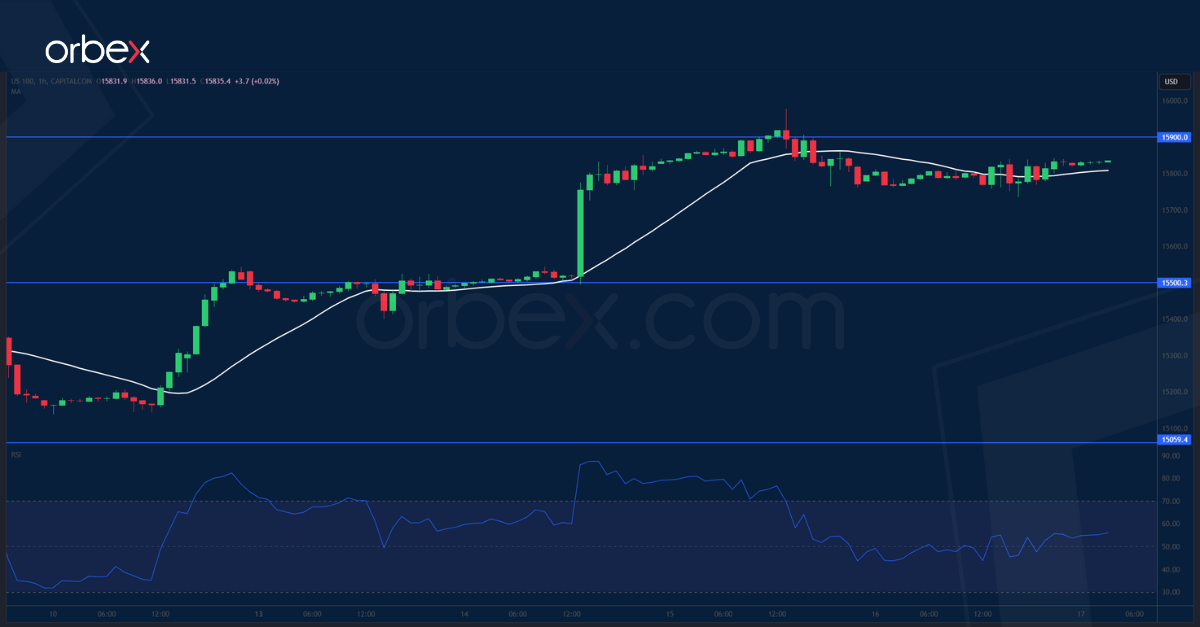 The Nasdaq 100 inched higher as both retail sales and PPI stayed subdued last month. A tentative break above last summer’s high of 15900 might have put the index back on track from the medium-term perspective. In the near term though, the RSI’s repeatedly overbought condition may lead to a limited retracement, helping the bulls consolidate their gains before another round of rally. 15500 is the first support and 15060 next to the 20-day SMA the bulls’ second line of defence in case of deeper correction.