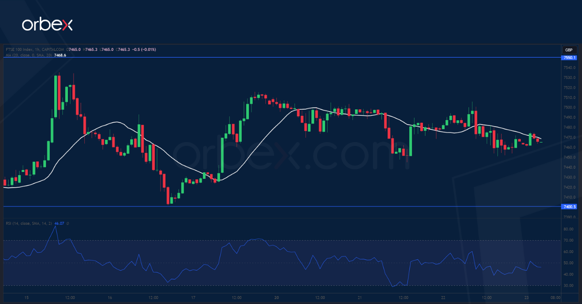 The FTSE 100 treads water as BoE Governor Andrew Bailey dismisses speculations of rate cuts. Ever since the index fell into a correction in February, the narrowing consolidation has offered a playground for range trading. The quadruple bottom around 7200-7250 is critical in sustaining the optimism as its breach would lead to a broader liquidation and drive the price action into the 7000-range. In the short-term, 7400 is the closest level to support the current bounce and a close above 7550 would bring forward 7680.
