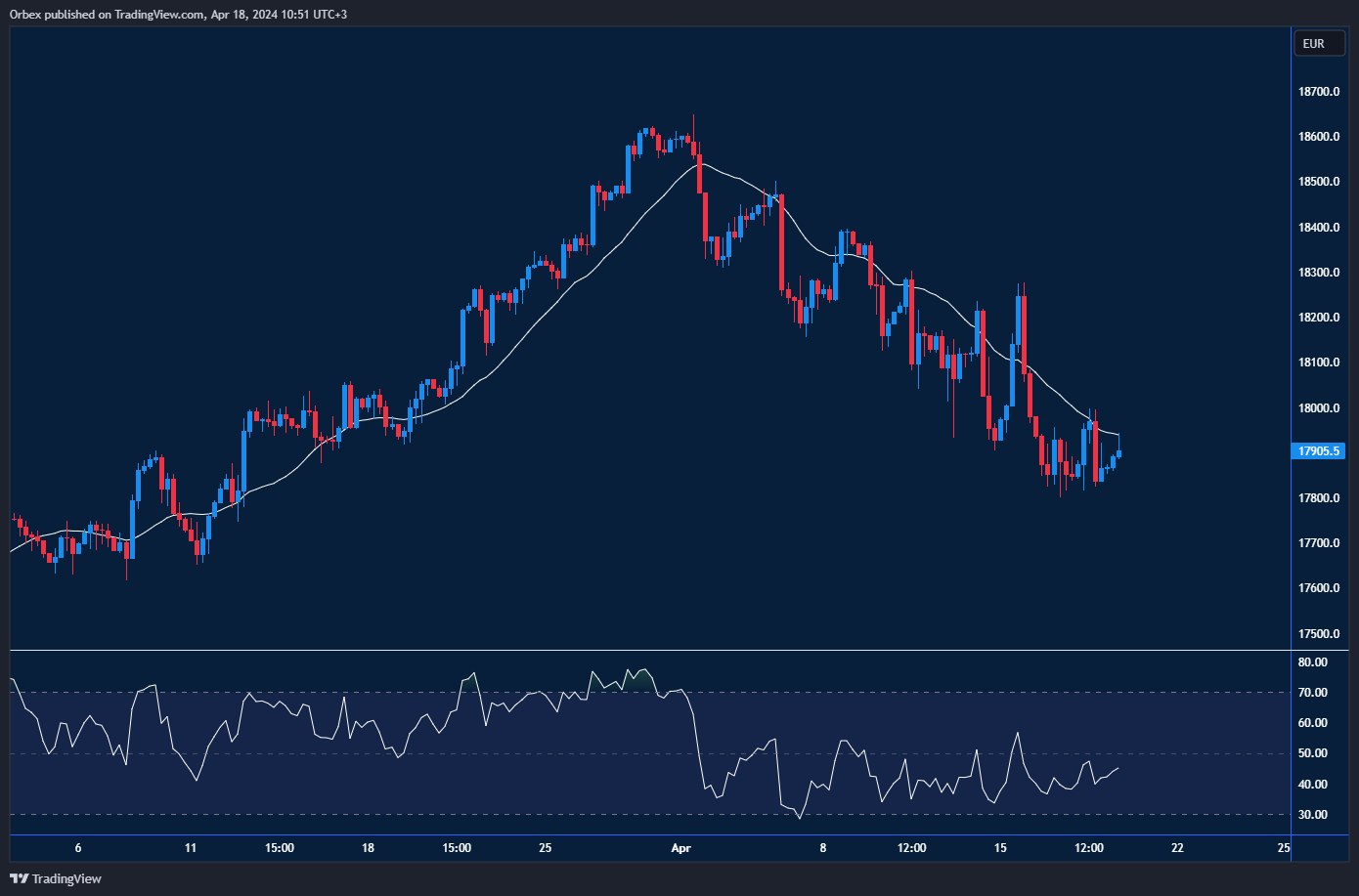 The Dax 40 found some consolidation after an 8% rise in Adidas’s shares. This helped to stop the index’s freefall since the start of the month. A close above 17900 would shift sentiment and expose the psychological level of 18000. As the RSI begins a bullish divergence, traders will be eager to see prices lift. On the downside, 17600 at the confluence of a previous swing low and the 20-day SMA is a significant level to test the resolve.