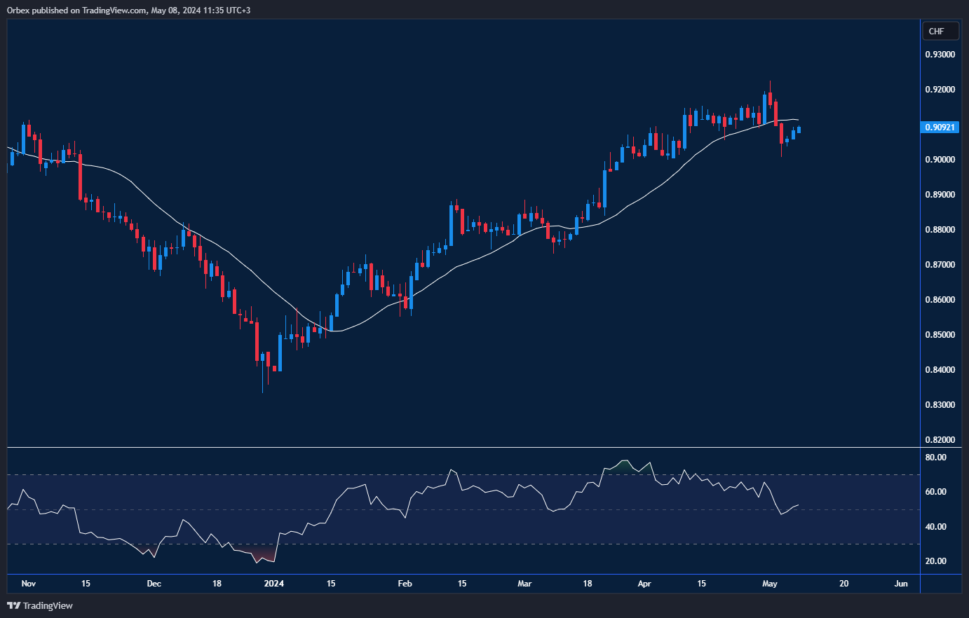 The US dollar fell from its recent high after dropping over 100 pips. The pair has been grinding its way up from a yearly low near 0.8430 and is aiming at the psychological level of 0.9200. Another bull run would prompt sellers to exit and open the way for a sustained rebound towards 0.9100. As the RSI creates a bearish divergence, 0.8950 is the first support, and 0.8840 is the second layer in case of a fallback.
