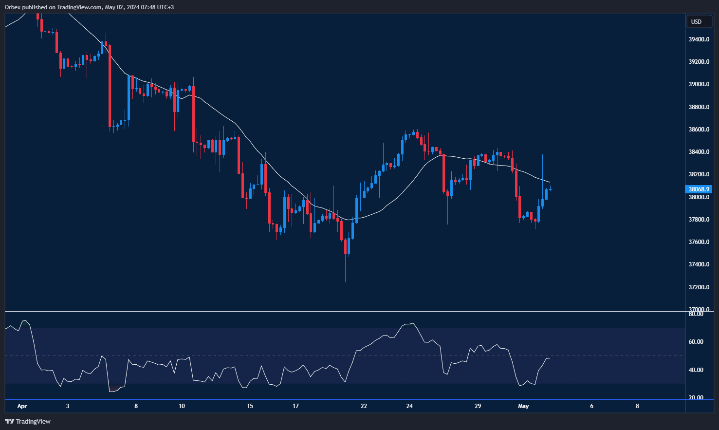 The Dow Jones 30 rallied as the Fed delivered the higher for longer approach to their interest rate. Whereas the Nasdaq and S&P both slipped, the Dow remained resilient. A move above the recent high of 38000 and the 30-day SMA has put bears under pressure, but with layers of support underneath, this is likely to be a consolidation rather than a bullish reversal. 37600 from the base of the last bottom could be the last saviour before a continuation of the bearish trend.