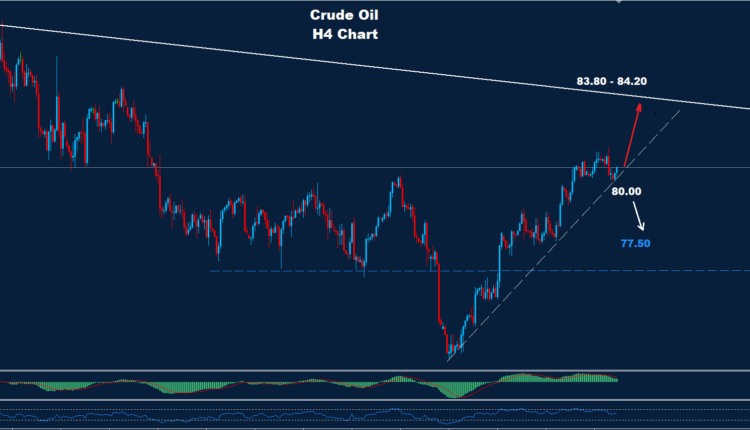 As we see on the chart, Intraday levels show the first support laying around 80.00. Should prices hold above this support, the advance movement could continue towards the 83.80-84.20 resistance zone.