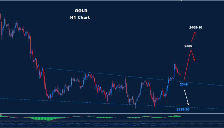 Gold broke above the 2355 resistance zone, pushing the market higher towards 2374.
