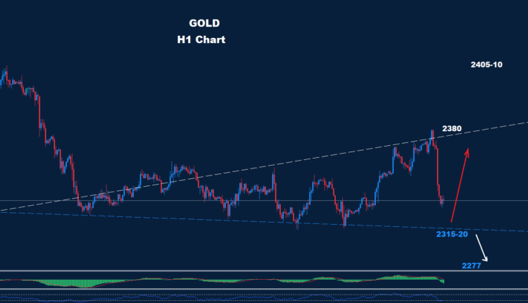 The market still faces an intraday support zone at 2315-20, with a rebound expected.
