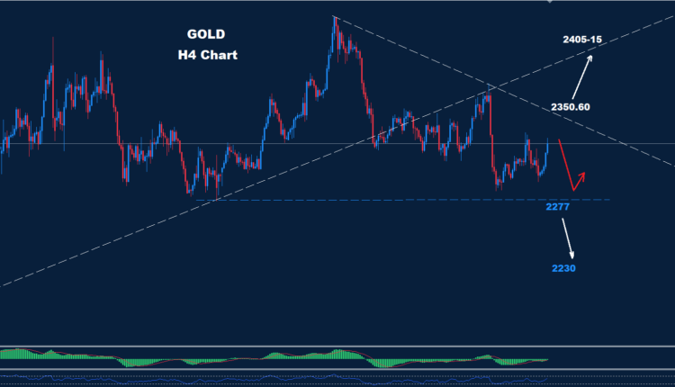 On the chart, Intraday levels show continuous pressure on Gold with support still around 2277.