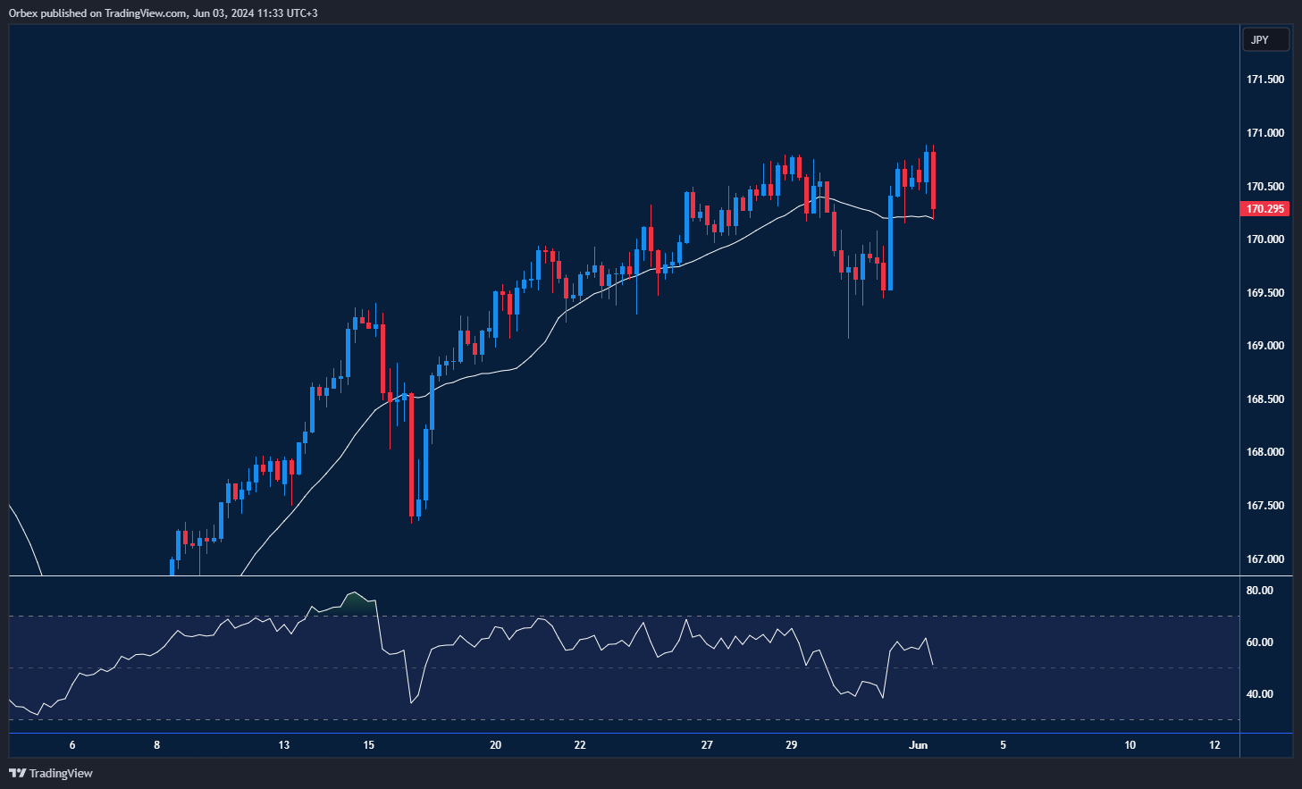 The euro steadies as the ECB decides if now is the time to act on the rate cut rumours. A brief dip below 170.00 has shaken out some undecided traders, but sentiment remains relatively solid. Price action on the chart indicates a lingering bullish pressure as it bounces off the 20-day SMA at 169.70. 171.10 is the closest resistance, and a breakout would lift bids to April’s high of 171.50, potentially resuming the uptrend. On the downside, 169.20 is significant support if the single currency struggles to bounce.