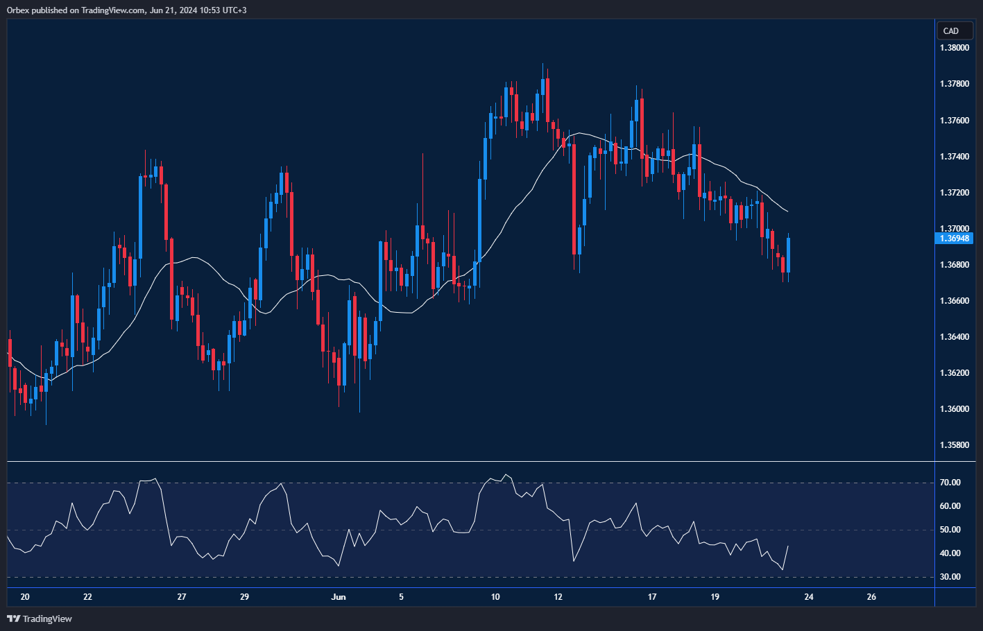USDCAD breaks lower