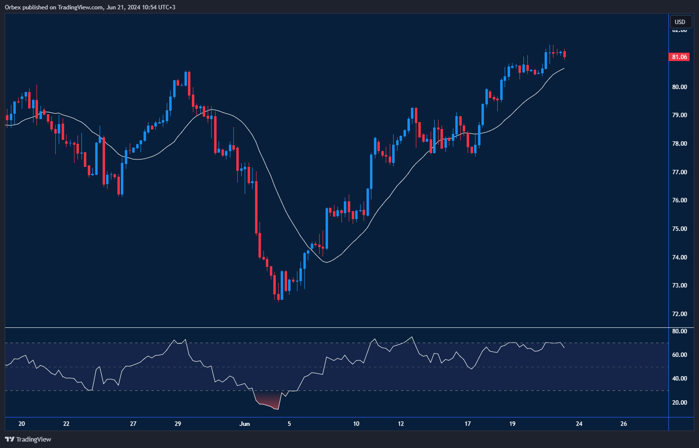 Crude OiL WTI hits another fresh high as economists expect a test at the $100 in the next few months. As a show of resilience, the price has managed to stay above the psychological floor of 80.00. A close above the first resistance of 80.80 has eased the downward pressure but bulls will need to lift the recent peak of 81.00 before they could end the lengthy consolidation and push for a broader recovery. On the downside, the psychological level of 80.00 is the first support to keep the current momentum intact.