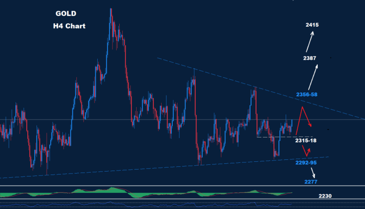 Gold still holds our expected trading zone between the support 2315-18 and resistance 2355-58.