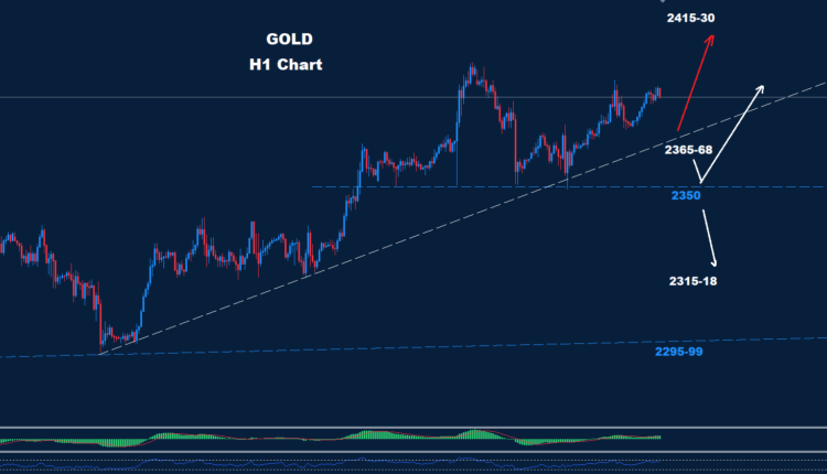 As we see on the chart, the market is facing the Intraday support zone around 2365-68, where as long as prices hold above, an advance wave toward the second target of 2415-30 will be expected.