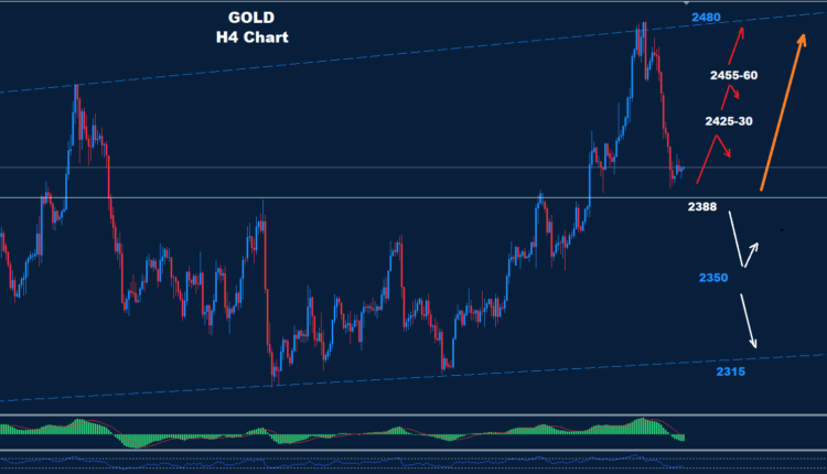 We predicted last week, if prices hold above 2388 a rebound correction could hit toward 2480.