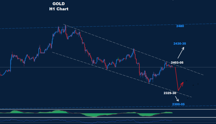 Gold managed to advance above the 2388 level and managed to re-test the downtrend channel resistance around 2403-05 last week and today.