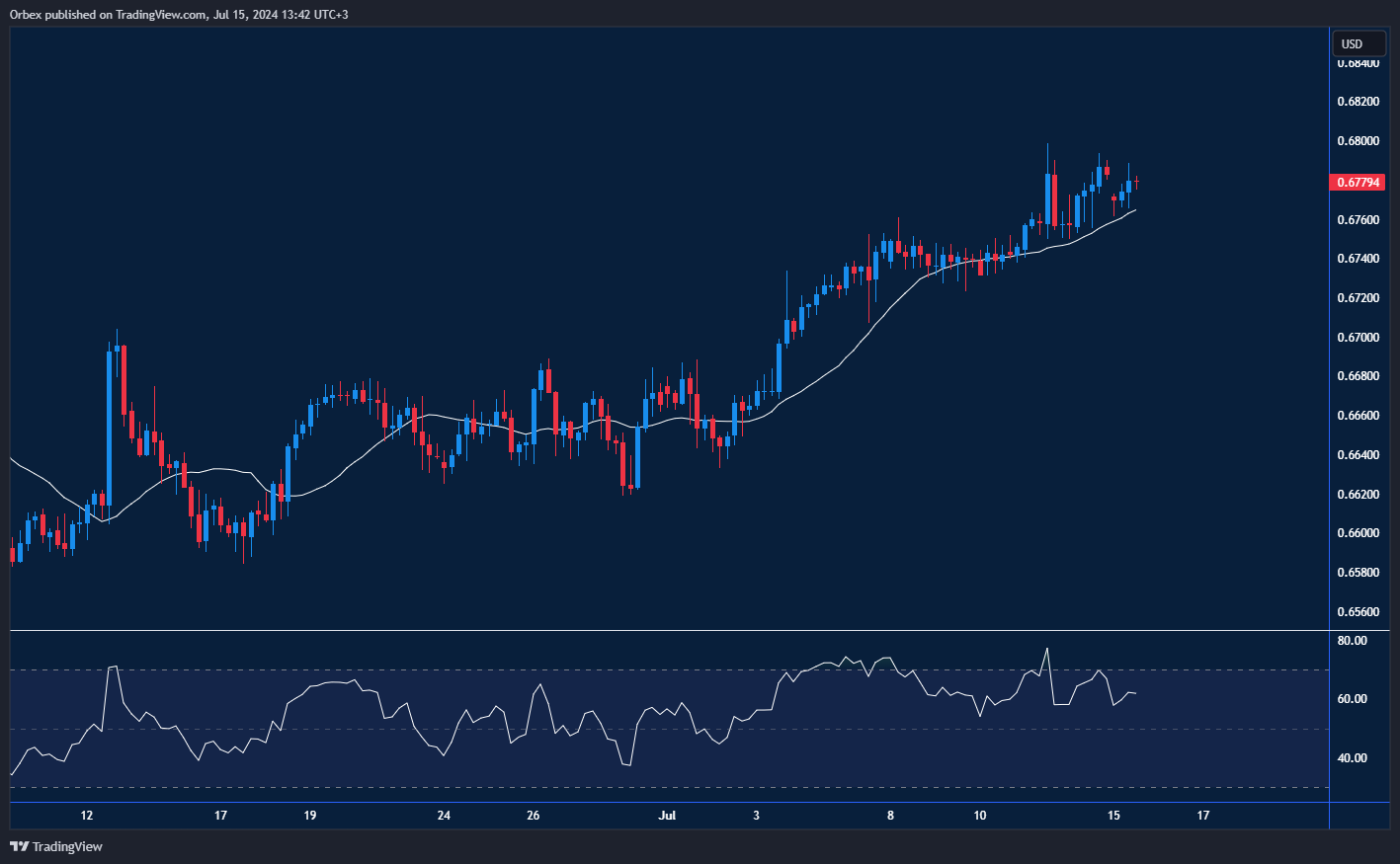 The Australian dollar continues to climb after a breakthrough in another hurdle. The pair has recovered from most of the recent decline and is on its way to testing December’s peak at 0.6870. A break above this crucial resistance would open the door to the psychological level of 0.6900, which would be a step closer to a bullish reversal. In the meantime, an overbought RSI could cause a limited fallback, especially if intraday bulls decide to close some positions. 0.6740 would be the first support in this case.