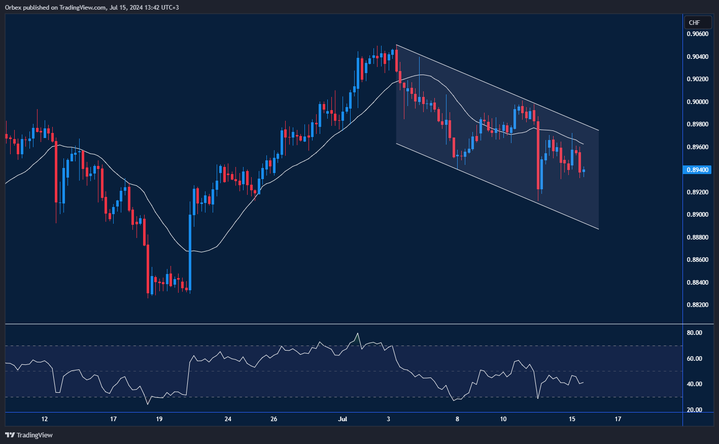 The US dollar sank further as USD inflation woes weigh heavy, and the Fed is expected to start trimming rates this year. On the chart, sentiment has turned from cautious to highly bearish. A move below this month’s low of 0.8900 is a vital sign of liquidation as the remaining buyers scramble to exit the market. As the RSI shows a repeatedly oversold condition, 0.8940 is the next level to see if any support would show up, and 0.8980 at the top end of the descending channel is the first layer of resistance to clear.