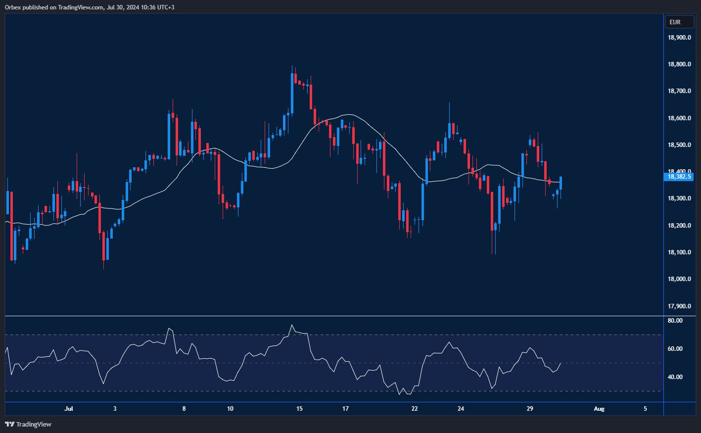 The Dax 40 remains choppy as the Eurozone awaits the ECB’s next decision. A sharp fall below 18500 from a previous bullish rally is a sign of inconsistency by short-term bulls. The RSI has recovered into neutral territory as sellers took profit, but the index has yet to stabilise, and traders might be wary of any surprises from the next ECB meeting. The recent peaks at 18650 and 18800 are the levels to see if buyers are returning, and 18100 is the immediate support.