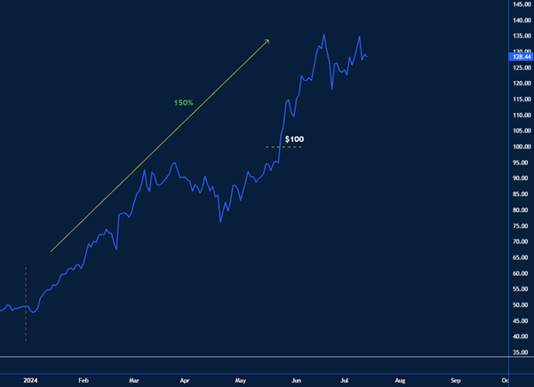 Nvidia’s value has already risen over 150% this year, breaking the $100 level in May.