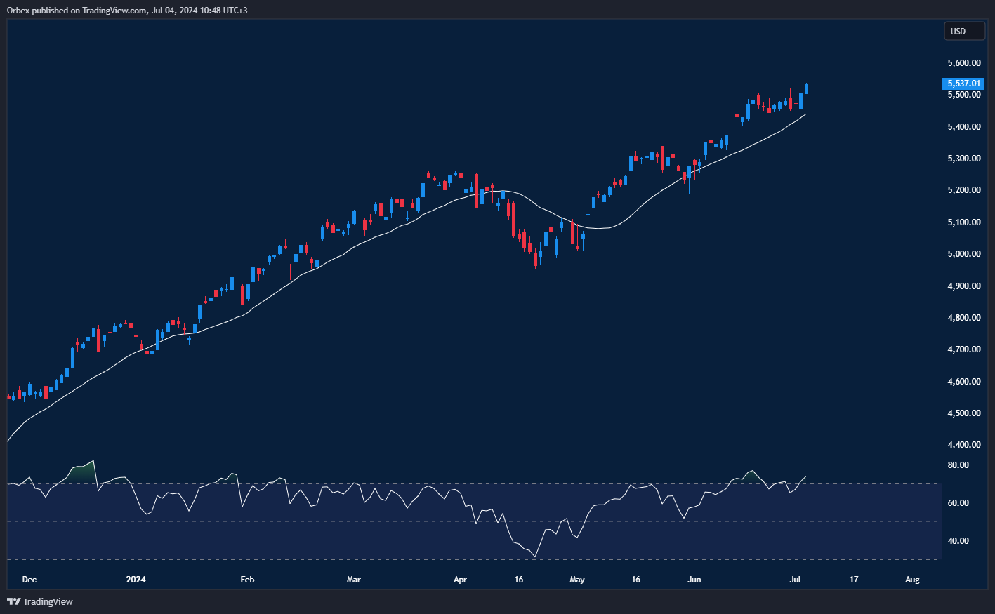 The S&P closed at another record high as mega-cap stocks such as Nvidia and Tesla led the way. With Tesla alone jumping 10%, it not only powered the S&P but also the Nasdaq to fresh highs. Whether or not this is just an AI bubble that is about to pop, economists are gearing up for further rallies on the index, especially as we close in on the Presidential Election race. The index is heading towards 5600, with 5300 being a fresh support.