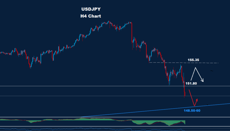 Market managed to break below the support of 151.80 today after the BoJ surprisingly hiked rates.