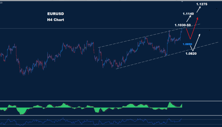 The Euro managed to test the resistance zone of 1.1030-50 while still holding inside an uptrend channel.