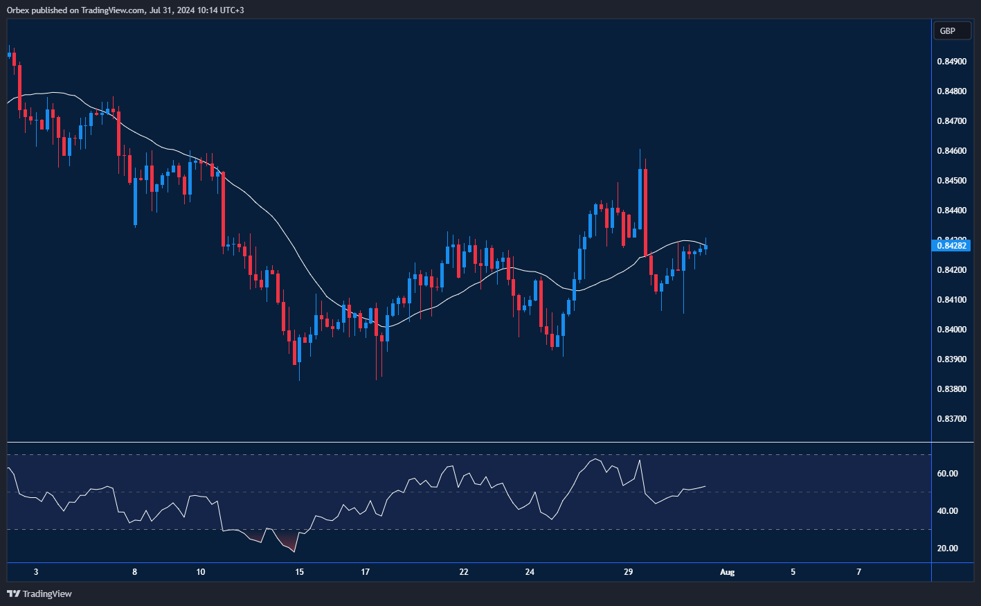 The Euro maintained its bullish stance after hitting higher lows, which has propelled the pair. As price action remains bullish, the subsequent divergence on the RSI will suggest either a loss of momentum or a continuation to the upside. A breach above 0.8460 would confirm another swing higher and prompt sellers to cover. Then, the former support of 0.8420 could be the last obstacle to a sustained rebound. On the downside, a fall below 0.8370 could trigger a new round of sell-off towards 0.8300.