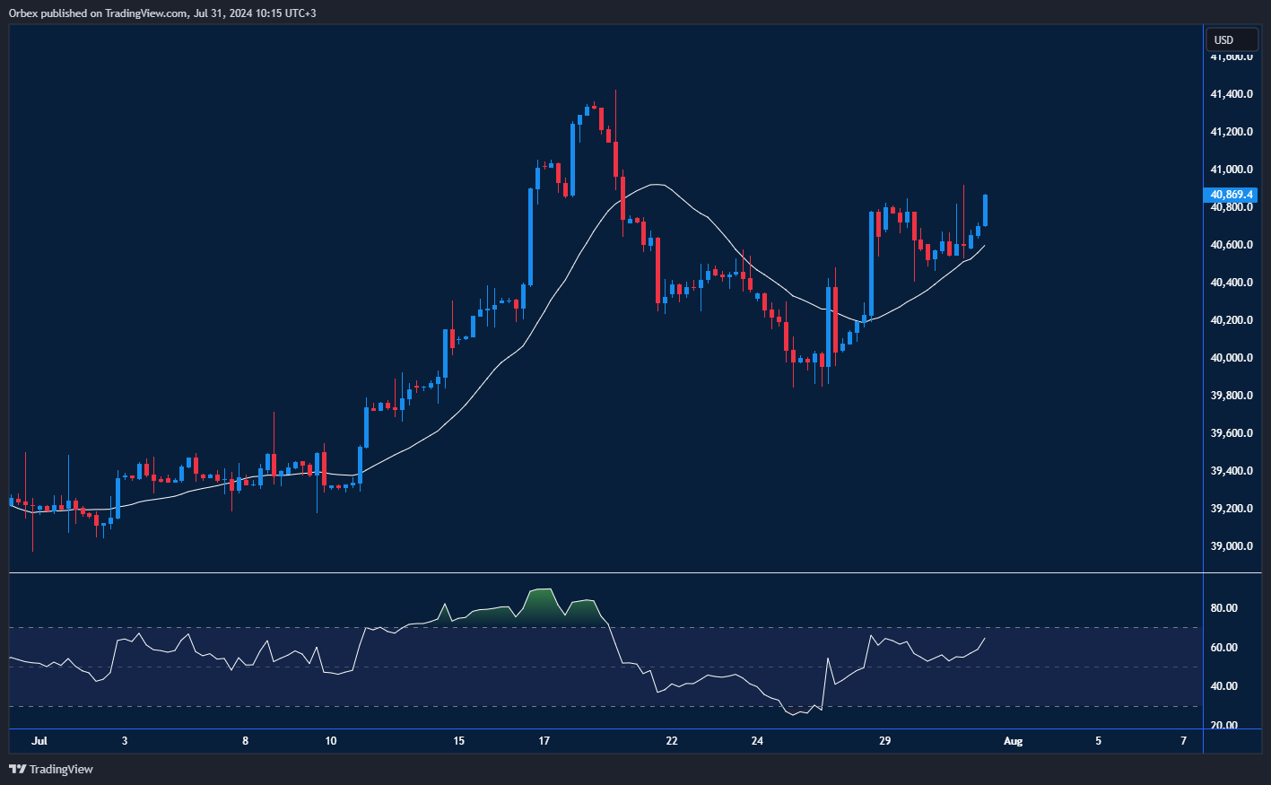 The Dow recovered some lost ground as the market turned its attention to the Fed’s interest rate decision. The index tests the previous swing low and daily support at 40500, a critical level to keep the bullish momentum going, as its invalidation would force bulls to abandon ship and cause a deeper correction. The top of a limited bounce at 41000 is the first hurdle to clear. In case of a bearish breakout, 39800 at the base of the July breakout rally could be in the crosshairs.