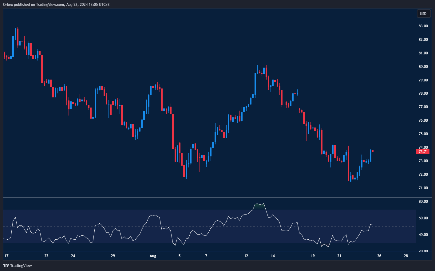 Oil WTI found some support after the recent bearish rally, which saw almost $10 wiped off its value. A series of lower lows was a sign of mounting selling pressure, and each dip had been an opportunity for trend followers to jump in. However, they found a bounce at 71.50, and a move above 73.00 has shifted sentiment to the upside. 75.00 is the next target as the RSI bounces away from the oversold territory, and 76.80 is a second layer to begin the recovery.