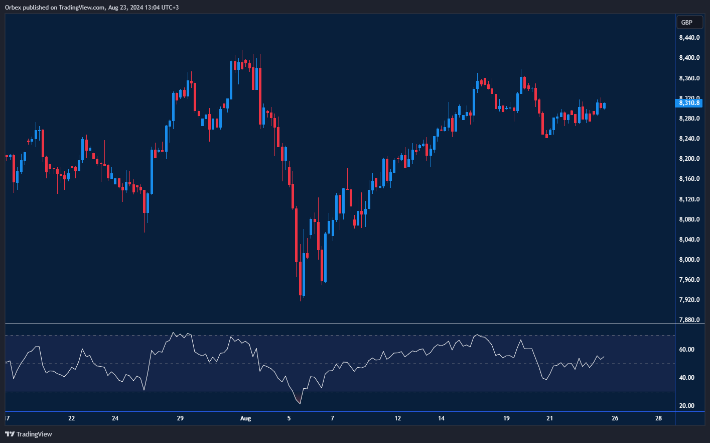 The FTSE continued its progressive behaviour after sinking below 8000 at the beginning of the month. A break above the cluster of levels around 8230 has triggered a boost of short-term long positions, sending the price above 8300. The RSI’s neutral condition could attract more buying interest as the index grinds the critical demand zone. 8370 is the first hurdle to lift before the rally can resume.