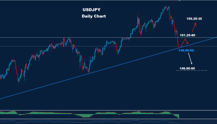 Below 148.50, the market could add more of a drop toward the 146.00-50 zone.