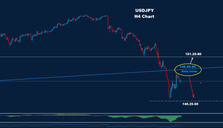 As we see on the chart and if prices remain below 148.50-60, the downtrend pressure could sustain for another drop toward 140.25-50.