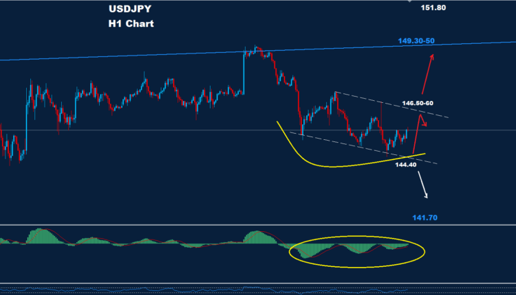 As we see on the chart, the market is facing support around 144.40 and resistance around 146.50-60.