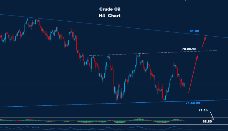 The main support trend still around 71.50-99, with Intraday supports at 73.50 and 72.60.
