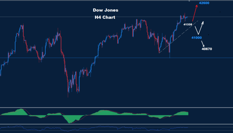 Below 41335 more of a drop could happen with supports at 41000 and 40670.