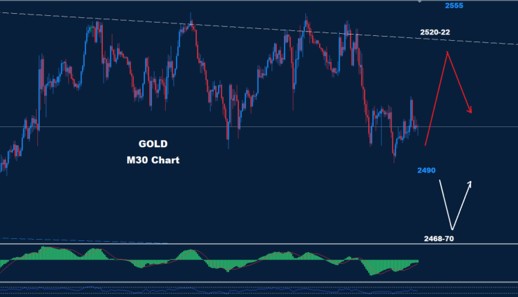 Above 2532 more advance could be expected toward 2555 and 2575.