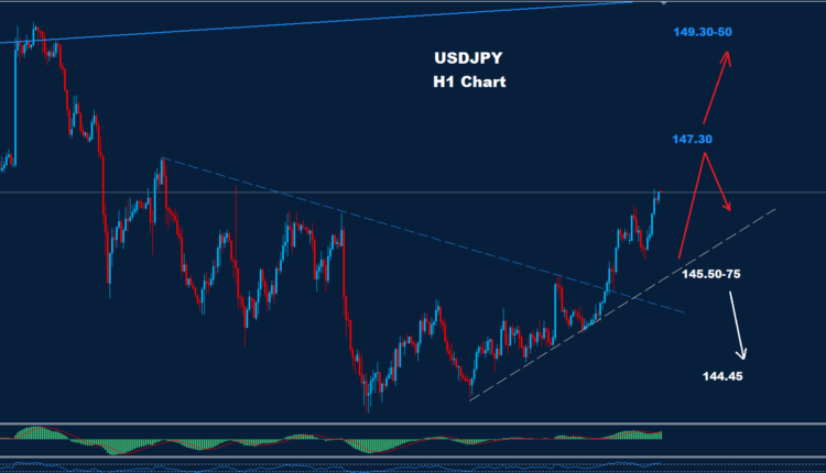 USDJPY managed to hold trades above the support of 143.40 and rebounded to close at and resistance 145.25-50.
