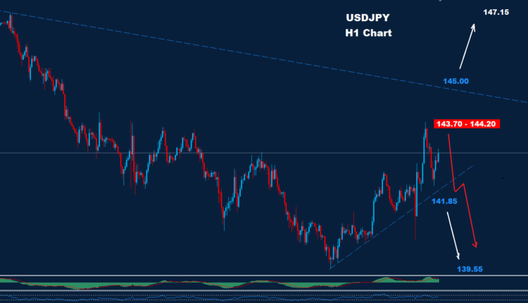 USDJPY managed to test the resistance zone of 143.70-144.20 and fell toward 142.00.