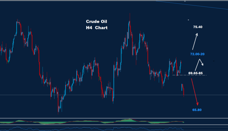 As we see over the chart, the market faces a resistance zone around 69.65-85. If prices remain below it, the downtrend pressure could sustain toward the target 65.80.