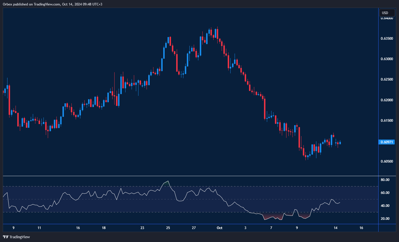 The US dollar pulled back slightly from its two-week rally against the Kiwi. A series of lower lows from the 0.6360 peak indicated growing pressure on the pair. After hitting support at 0.6050, the Kiwi has seen a bounce as price action attempts to regain the 0.6100 level, denting the bearish momentum. 0.6150 at a previous consolidation is the next level, and further up, a move above 0.6230 could trigger a complete reversal.