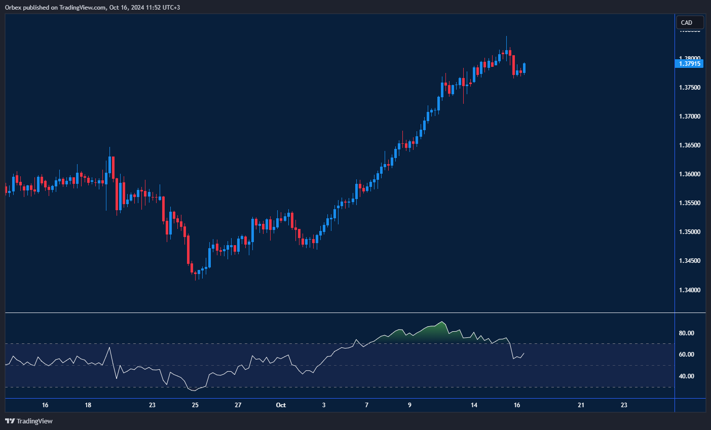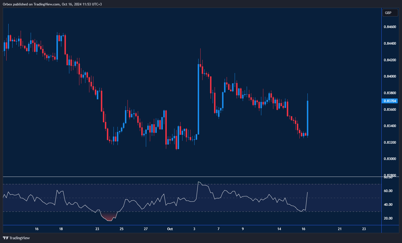 The pound heads lower as inflation drops more than expected. On the chart, the euro’s break above 0.8360 indicates a strong comeback after a month-long correction. Offers around September’s high of 0.8460 are the last significant hurdle, and a bullish breakout would pave the way for a sustained recovery above 0.8550. On the downside, 0.8320 is a fresh support in case of a reversal to the fundamental news as the RSI moves towards the overbought area.