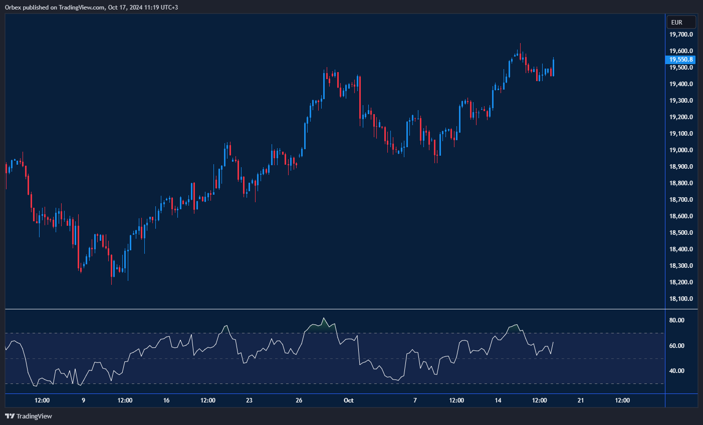 The Dax maintains its bullish advance with another jump away from the psychological level of 19000. A bounce off 19400 on the daily chart has put the bears on the defensive. 19550 has turned into a fresh resistance and a pullback, and a few points could be seen shed off the index as the RSI sinks towards the neutral area. 20000 is the next stop to see if the rally will continue or if prices will become vulnerable to a deeper correction below 19000 in the medium term.