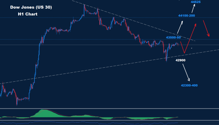 The Dow remained above the support of 42900 and broke above the resistance of 43550.