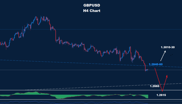 As we see on the chart, prices now face the resistance zone around 1.2840-60. If prices hold below, more of a drop toward 1.2615-65 will be expected which in turn could push for a rebound.